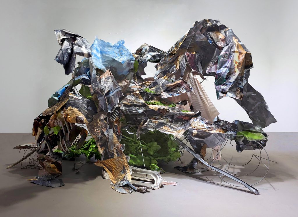 Focusing on nature as an “ever-evolving system intricately intertwined with human culture”, Leibowitz constructs hybrid objects and installations that blur boundaries between the manufactured and the organic. Her large-scale installations combine mangled steel, plastics, salvaged architectural materials, tree roots, and branches with photographs that become structures depicting the aftermath of demolished buildings and storms. Informed by Post-Naturalism and fragmented memories of land and place, her installations function as “facsimiles of nature” considering complex dynamics around environmental stories, histories and constructed narratives.